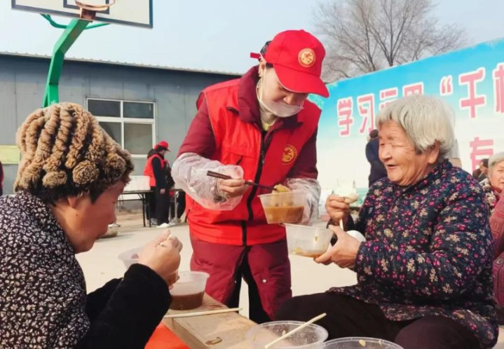 近日,武邑县委社工部、团县委、县妇联、县志愿服务联合会在武邑镇四里屯村共同开展千村公益之“千叟宴”志愿服务活动,全村180余位老人齐聚一堂,共享温馨时刻。
