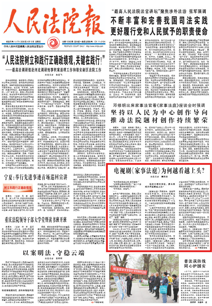 北京市高等东谈主民法院官方微信公众号“京法网事”的“高眼看剧”栏目,已经编发了多篇北京法官对于《家事法庭》的不雅剧体会与普法解读。