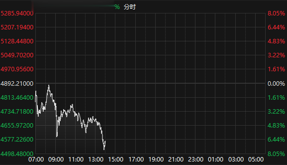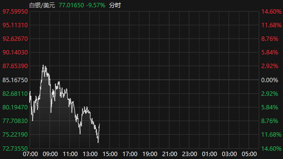 上证报中国证券网讯据Choice数据,2月2日,国际现货黄金震荡下行,亚搏app下载盘中一度跌破4500美元/盎司关口,截至14:01报4563.27美元/盎司,日内跌6.72%;现货白银报77.02美元/盎司,日内跌9.57%。