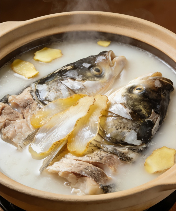 天麻10克(息风通络)、川芎5克、鳙鱼头1个、生姜数片。鱼头煎至微黄,与药材、生姜同入锅,加水慢炖1小时,加盐调味。天麻川芎是经典“治头风”搭档,鱼头富含营养,一起炖汤,能祛风通络、补益脑髓。 每周吃一次,温补而不燥。