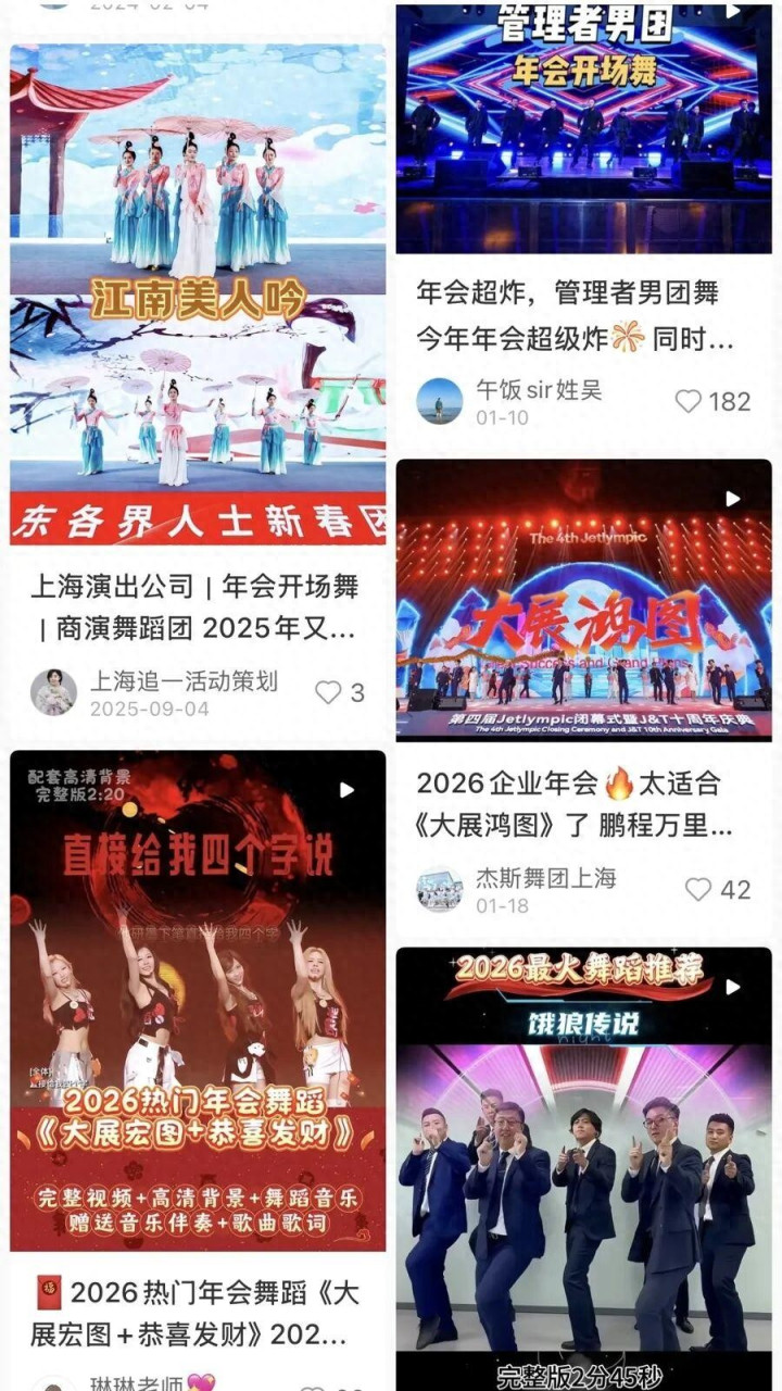 有的年会节目,本身也能成为公司内部“热梗”。比如,近期就有一家公司领导带头跳起热舞,略显笨拙的舞姿、不够整齐的动作却收获了台下的欢呼,成为员工间津津乐道的“名场面”。