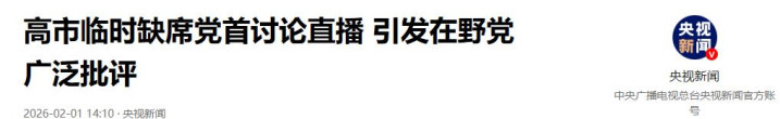 2026-02-01央视新闻《高市临时缺席党首讨论直播 引发在野党广泛批评》