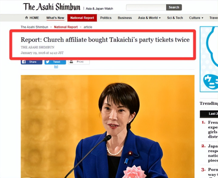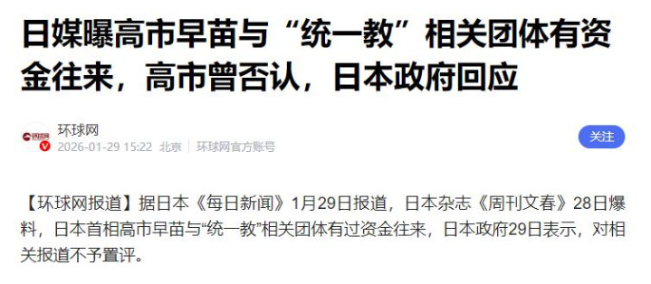 日本《周刊文春》1月28日爆料,高市早苗事务所的政治资金筹资集会券,曾被“统一教”相关团体购买,与其此前否认接受该组织支持的表态完全相悖。