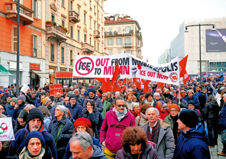 1月31日,米兰的街头聚集了数百名抗议者,呼喊、哨声、标语与喧闹音乐交织在冬日的空气中。他们抗议美国移民与海关执法局(ICE)人员在即将到来的米兰冬季奥运会期间进驻部署。参与者中有意大利民主党成员、意大利总工会的工会人员,以及普通民众,每个人的面孔上写满了对一项跨国执法行动的疑虑与不安。