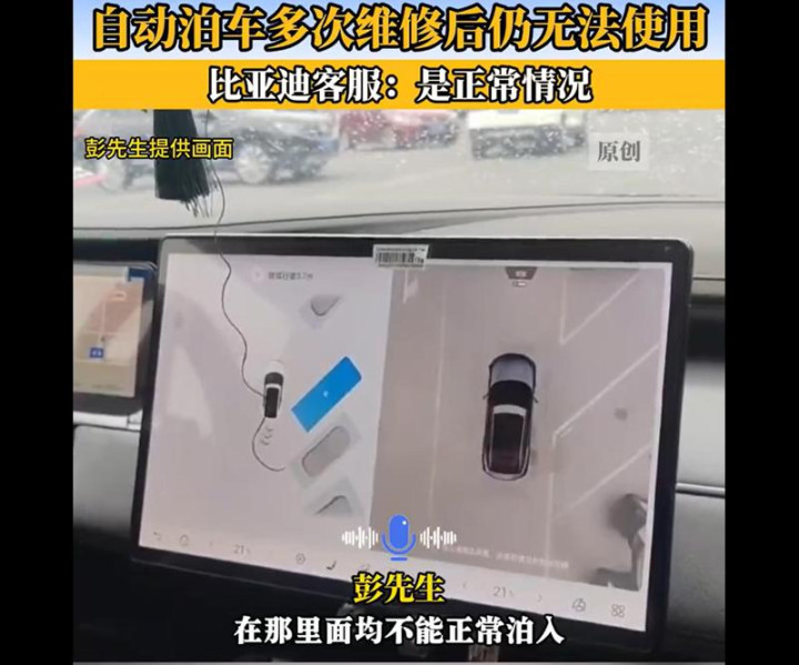 3月31日,彭先生向媒体爆料,他于2024年1月购买了比亚迪2024款宋L EV602KM不凡四驱顶配版,因看中宣传中的自动停车功能,方便家东说念主用车才聘请此车型。但是提车时该功能未通畅,直至2024年3月厂家才通过OTA升级解锁权限。但通畅明,自动停车功能通俗出现停车中断、无法泊入的情况。