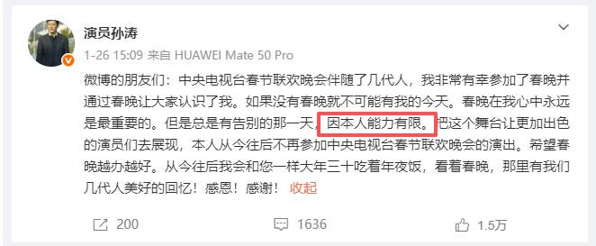 很多人以为,不上春晚就是要退圈了,可孙涛完全不是这个意思。