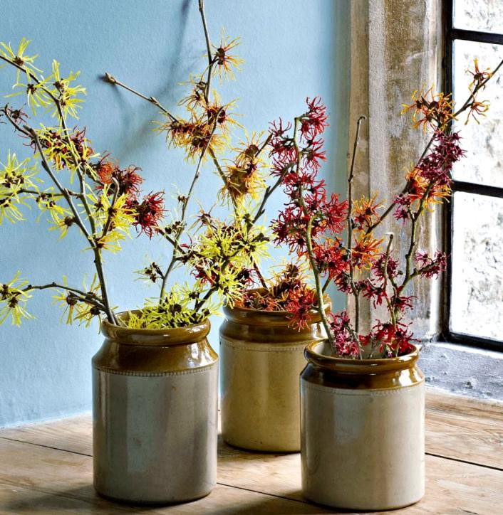 养护难度很低:金缕梅耐阴耐寒,冬天放在室内半阴处也能生长,不用刻意晒太阳;土壤保持微湿即可,浇水不用太勤,每周1-2次就行。它的花朵小巧精致,花期在冬末春初,开花时既能赏景,又能抗菌,特别适合冬天养。