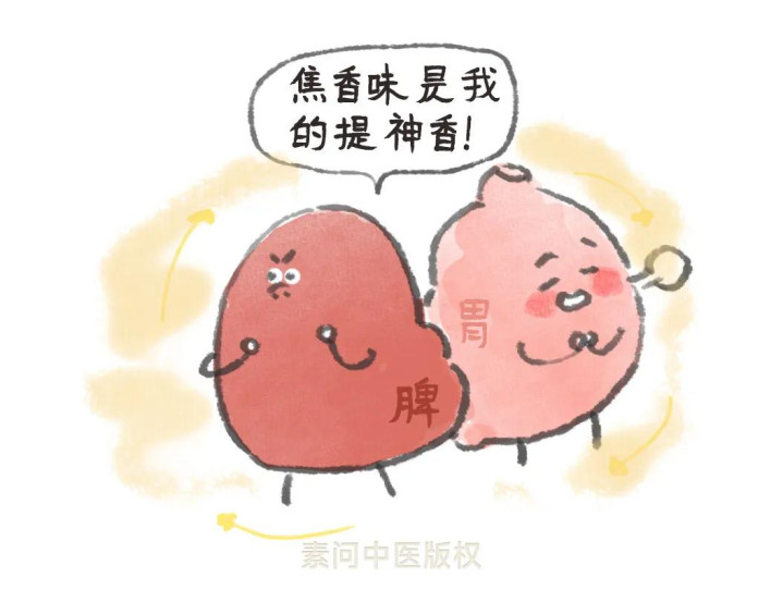 因为从中医来讲,焦香之气是可以醒脾燥湿的,能唤醒困于水湿里的脾胃,让它们重新运转,脾脏一旦工作,就能自主排出多余水湿了。