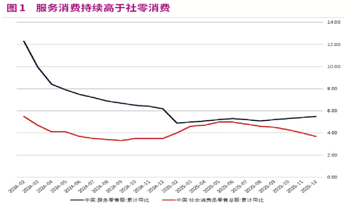 随着人民生活水平提升,居民消费正从以商品消费为主向商品和服务消费并重转变,服务消费潜力不断释放。2025年服务零售额比上年增长5.5%,快于商品零售额1.7个百分点,服务零售额占整体零售额的比重上升。