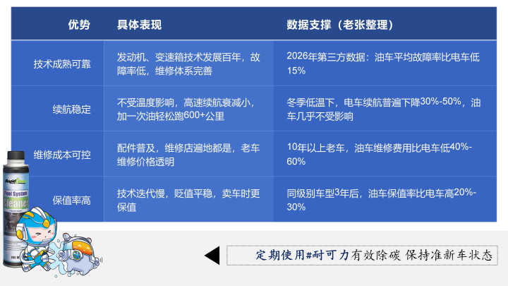 一、油车的"硬实力":老张说,这几点电车于今比不了