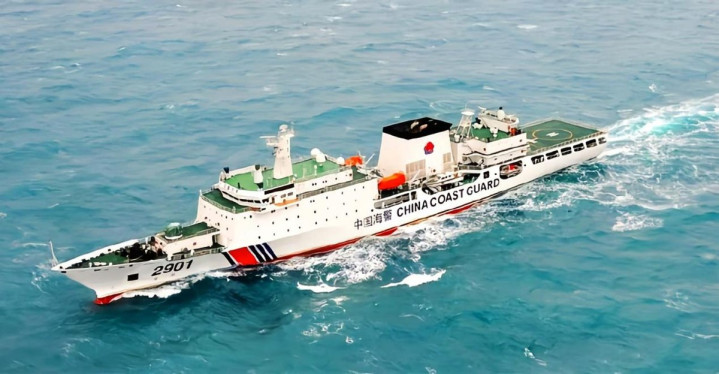 日本海保船在哪?只能在远处看着,连靠近阻拦的勇气都没有。吨位即正义,口径即真理,在海上执法现场,这就是唯一的语言。