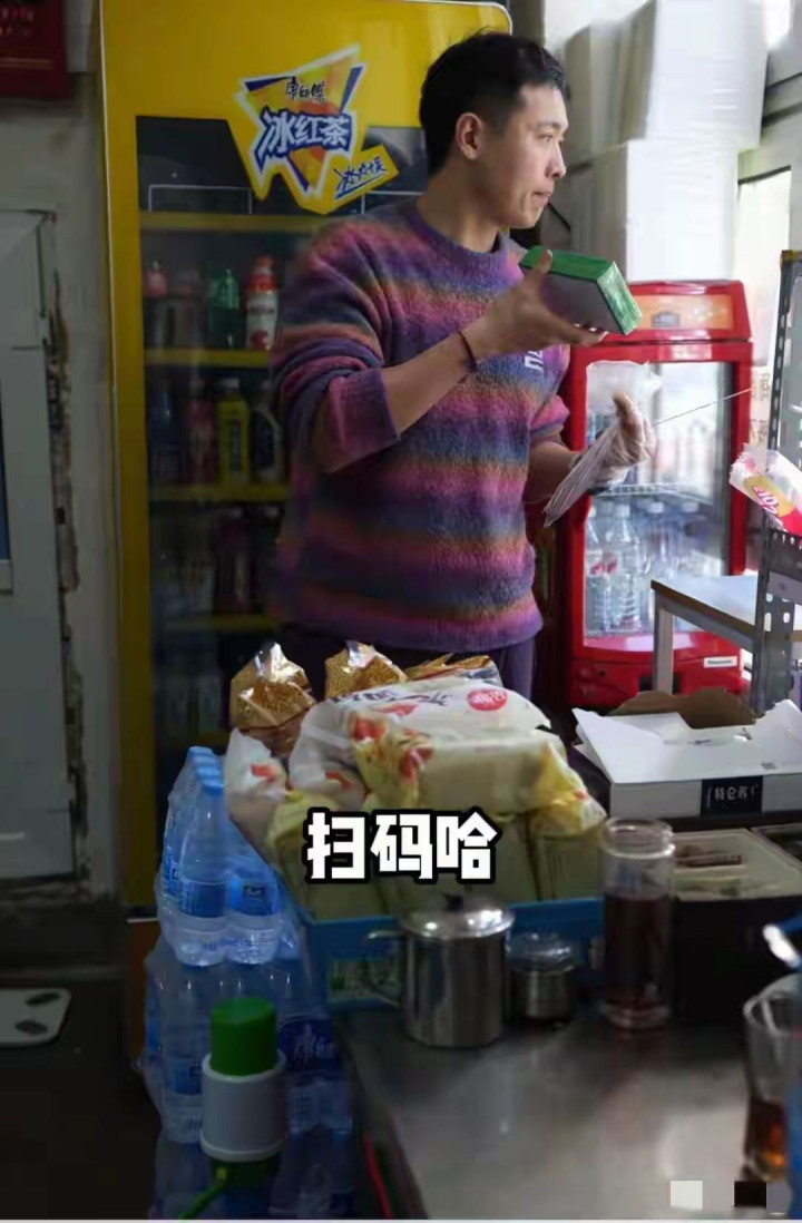 最“爆”的所在还不是烤串,是半途有东说念主来店里买东西,他径直起身去赞理卖货,问清价钱让东说念主扫码付款,小店里摆的东西也杂,洗洁精、照拂垫、塑料盆、纸巾王人在货架上。