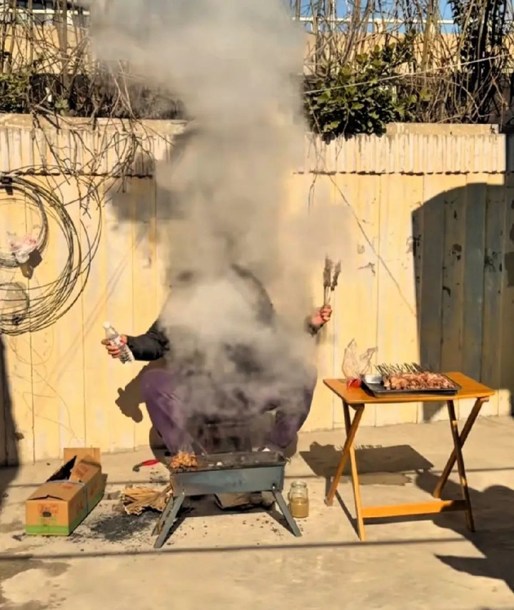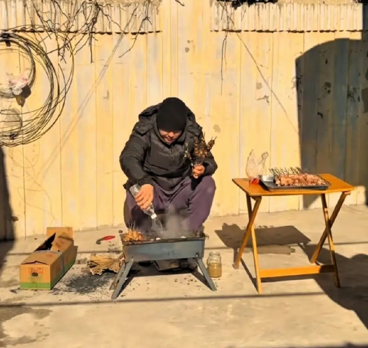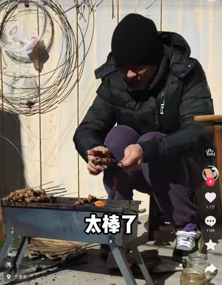 更挑升义的是,碰面神气也很“天津味”,不摆桌不开场,先蹲地上烤串,串大,火旺,东说念主也平淡,高云翔嘴上说我方能吃五十串,回首就我方脱手烤,衣服胳背处蹭脏了也不注重。
