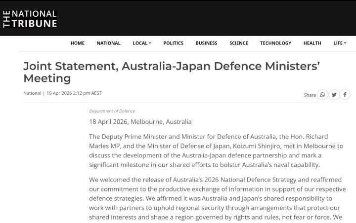 4月18日,澳大利亚副总理兼国防部长理查德·马尔斯与日本防卫大臣小泉进次郎在墨尔本会晤,两边订立三艘日本“最上司”护卫舰的采购建造条约,以及后续八艘同级护卫舰的框架条约——更紧要的是,日、澳防长在会面后结合发布了一份所谓的“结合声明”。