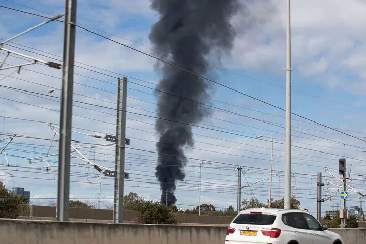 这是2月28日在以色列特拉维夫拍摄的浓烟。新华社记者陈君清摄